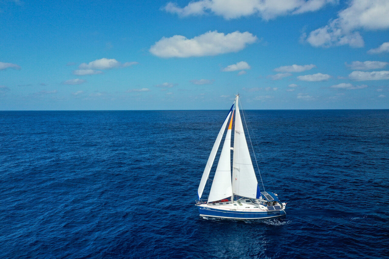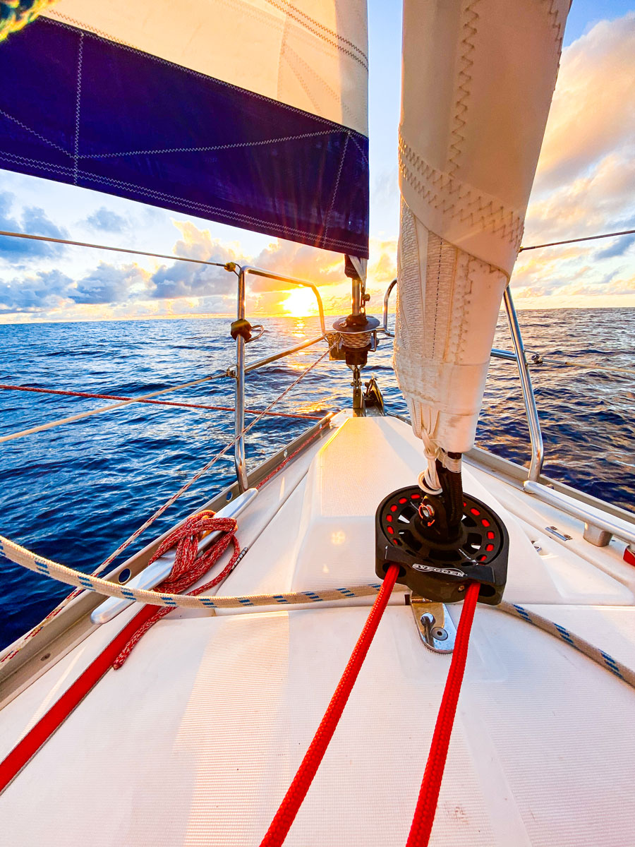 Their boat is primarily a sloop, but with the option on a removable cutter stay: “Handling is far more important to us than outright performance. We sail full-time and short-handed, so a manageable, low-stress sail plan is essential.”