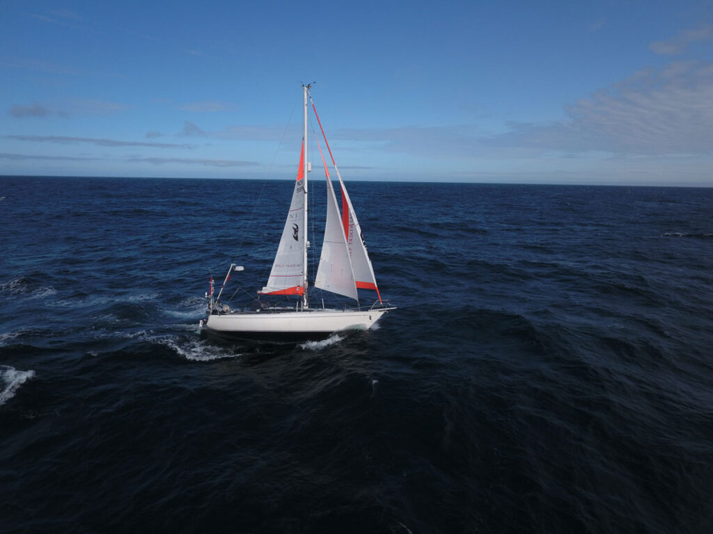 The three new sails from Rolly Tasker: Those three sails, yankee, staysail and mainsail, were delivered to New Zealand in May 2025, after Susanne’s intensive input about all details. “The quality and craftsmanship are excellent”, she says. The mainsail has two very unusual features. “The solidly made and very strong sail has no battens at all, and four reefs. I do not mind the slightly smaller sail area without battens”, Susanne says. “This new main has proven to be excellent in the 15.000 NM since New Zealand. Now I can tie in reefs on downwind courses even easier, as always without a course change, with no threat of battens getting jammed at the shrouds. Same applies if I need to lower the sail completely in stormy conditions.”