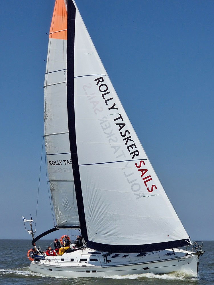 He is the CEO of Rolly Tasker Sails and his boat is a modern, fast cruiser JPK 38. It has a cutter rig with a semi-fixed cutter stay which carries a staysail on hanks.