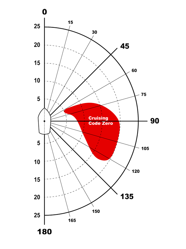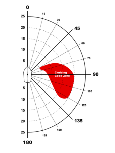 This is an allround reaching sail, originating from offshore racing for close power reaching. In cruising mode, it can also be sailed further off the wind. For cruisers it is a powerful but sail that can easily be handled from the cockpit when set on a furling gear. Cruising Code Zeros are designed with a straight luff incorporating an anti-torsion rope and a small positive roach for stable trim and easy handling. They can be made from heavy spinnaker cloth or a laminate.