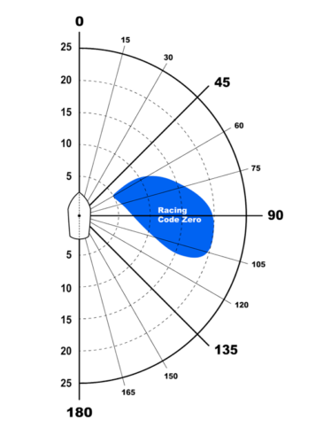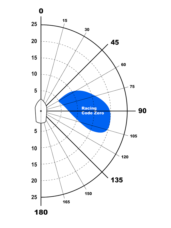 Our racing Code Zeros are made of an advanced laminate. The mid girth of Racing Code Zeros is designed to be 75% of the foot to avoid rating penalties. The causes a small downturn in the range of wind angles and handling but is accepted by racers due of the advantages in rating.